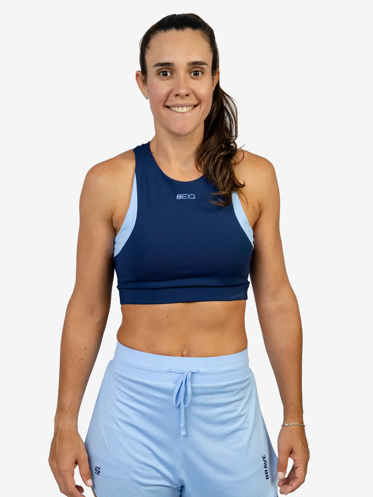 O Top Fitness Duplo Brave Marinho ZEIQ é a união perfeita de alta tecnologia e estilo para o seu treino. Desenvolvido para a coleção exclusiva das atletas Rafa Miiller e Patty Diaz, este top apresenta um sistema de compressão inteligente: o corpo principal é confeccionado em tecido Shape Plus azul escuro (84% poliamida e 16% elastano), enquanto os recortes e detalhes em azul claro utilizam o tecido Candy Power (84% poliéster e 16% elastano), garantindo o equilíbrio ideal entre firmeza e leveza.