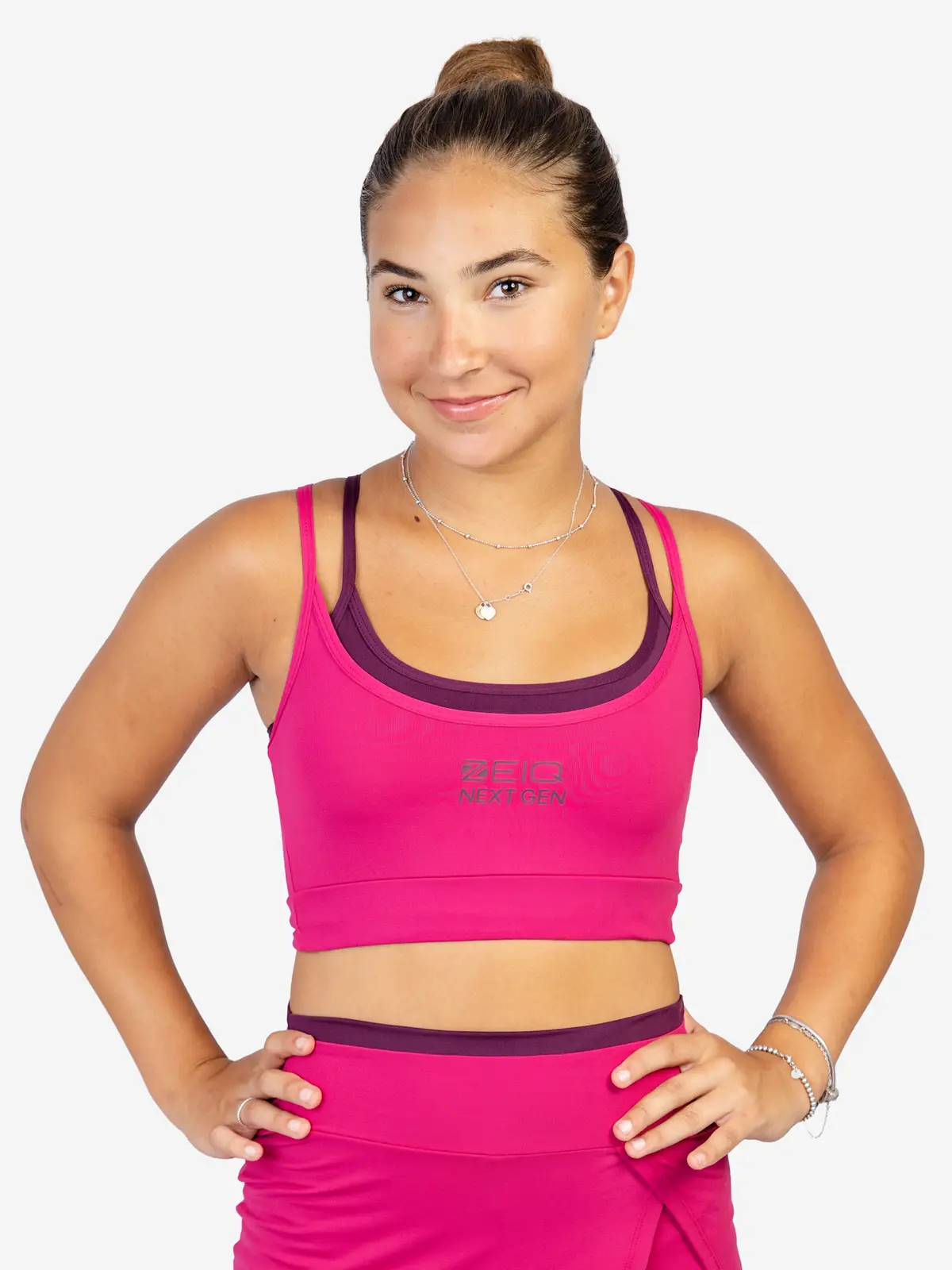 O Top Fit Alça Duplo Pink Glam NG ZEIQ é a escolha definitiva para quem exige performance e conforto inigualável. Parte da coleção Next Gen, este top oferece um sistema de compressão inteligente e toque premium: o top externo e a barra são confeccionados em poliamida (92% poliamida e 8% elastano), garantindo um toque gelado e sofisticado, enquanto o top interno utiliza poliéster (87% poliéster e 13% elastano) com forro também em poliéster (88% poliéster e 12% elastano), proporcionando sustentação e rápida absorção de suor.