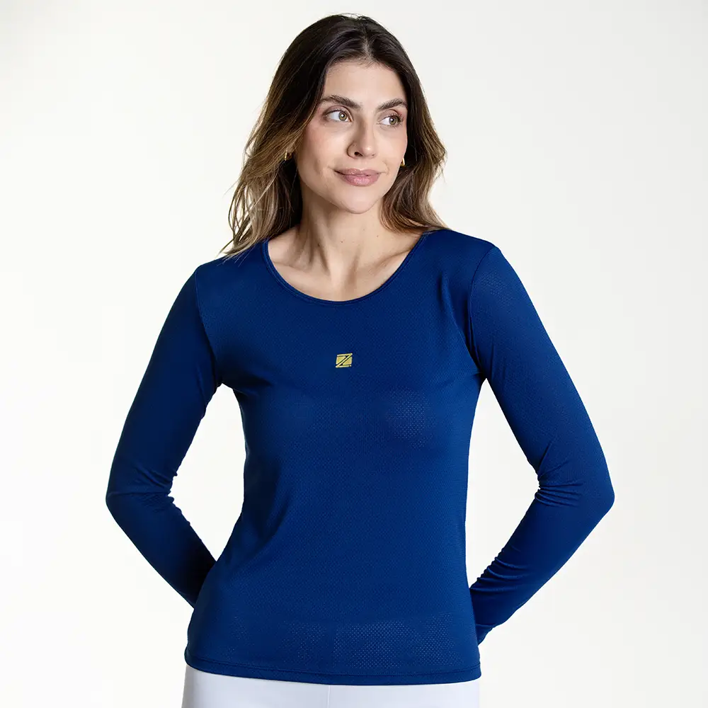 202.034 – Camiseta Esportiva Fem Dry Manga Longa Zeiq Azul Marinho