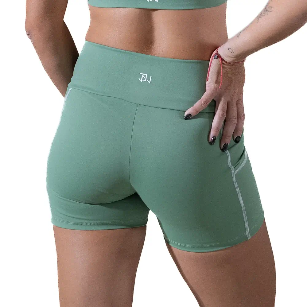O Short Pulse da coleção exclusiva Júlia Nogueira foi desenvolvido para garantir mobilidade e conforto em cada movimento. Confeccionado em tecido Aerobic (82% poliamida e 18% elastano), oferece leveza, elasticidade e secagem rápida, aliando performance e estilo com o design único da atleta.